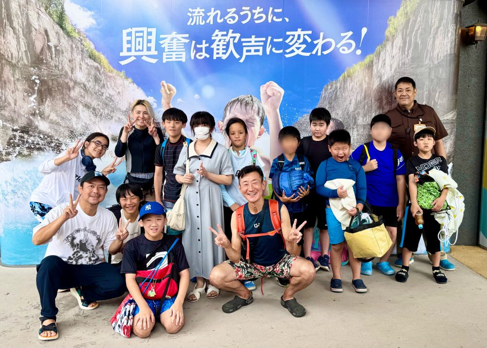 Aさんが辞去された後、子ども達に一部始終を説明。そして、歓喜の雄叫びと共に今年もサマーランド行きが決まったのでした。かくして迎えたサマーランド当日。子ども11名・大人3名の総勢14名で、朝8時にみんなのおうちを出発。途中で渋滞が生じることもなく、スムーズな流れでサマーランドに着きました。エントランスで出迎えてくれたAさんにみんなで感謝のご挨拶を済ませたら、いよいよ入場!宴の始まりです!!この日を待ちわびていた子ども達はとにかく元気!流れるプールやウォータースライダー、水上アスレチック、遊具のあるプールなどお昼ご飯も忘れてしまうくらい夢中になって遊んでいました。特に「モンスターストリーム」という激流の川下りのようなプールがスリル満点で大人気。これまで体験したことのないような感覚を何度も何度も味わっていました。